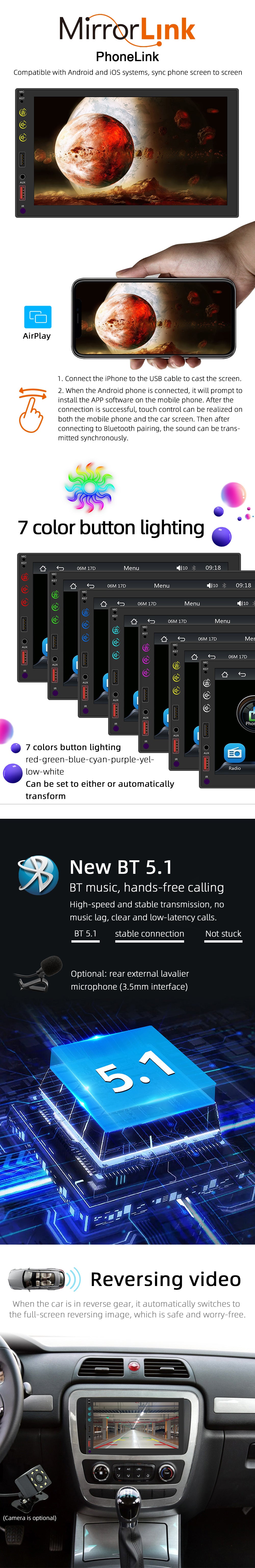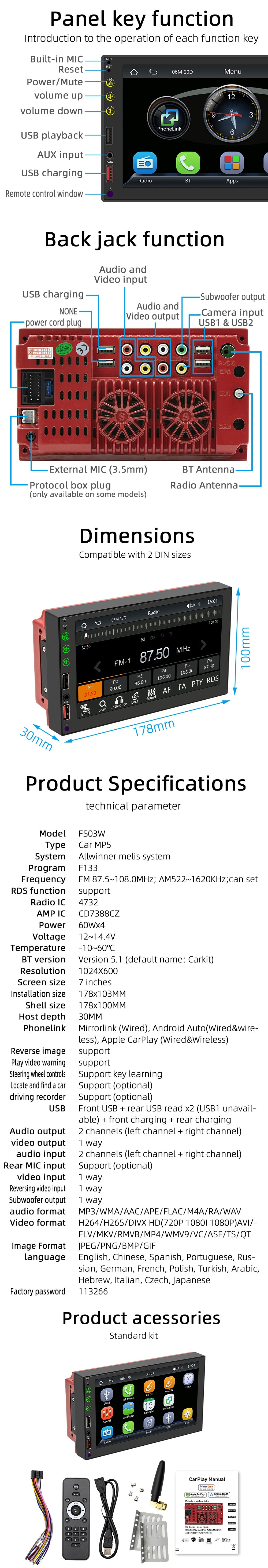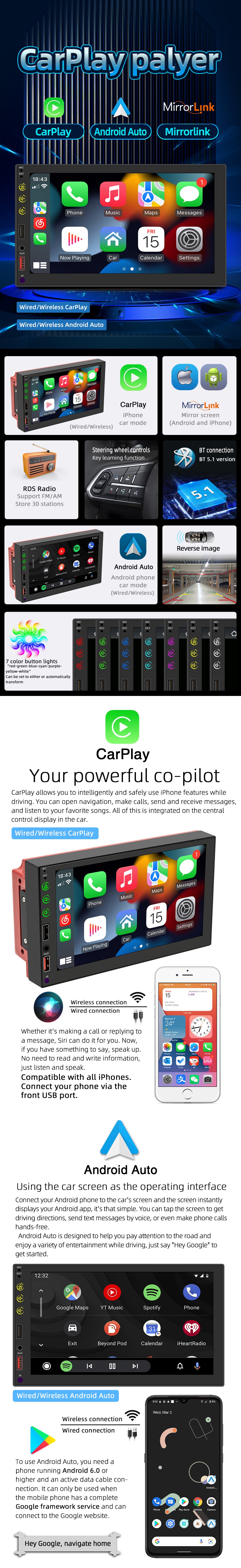 car multimedia player Bluetooth car radio with wireless carplay 7 inch HD screen car mp5 player