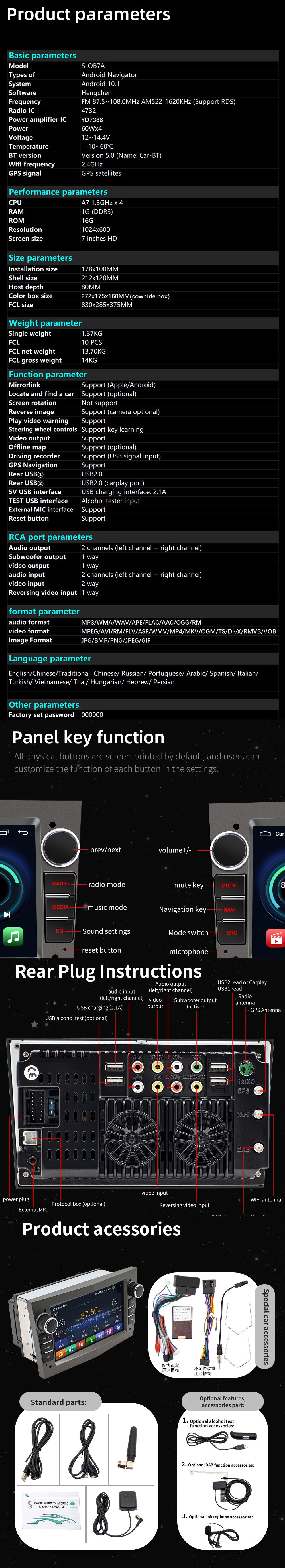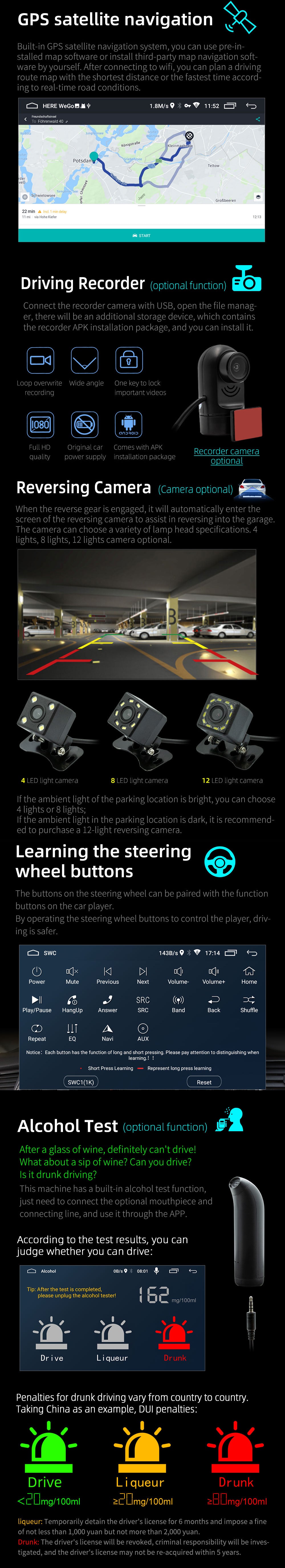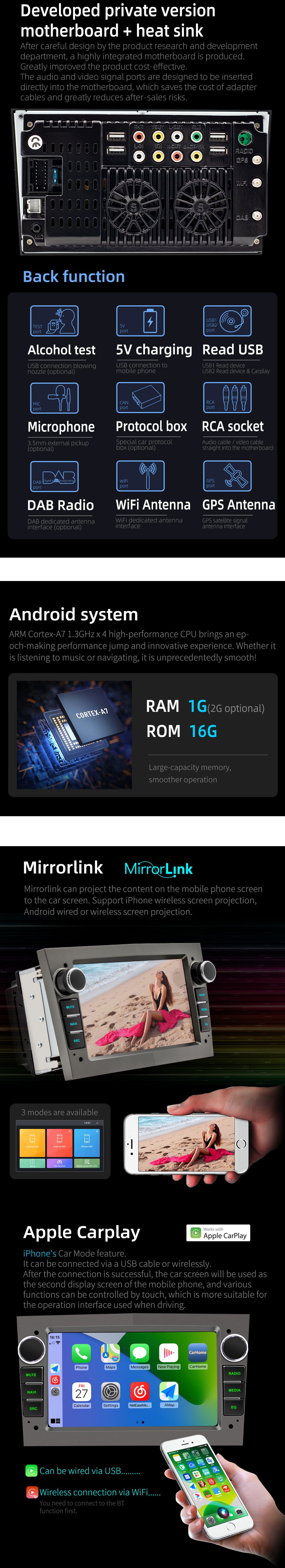 Mirror Link:Support, for iphone and android phone Seven-color key backlights adjustable: Support