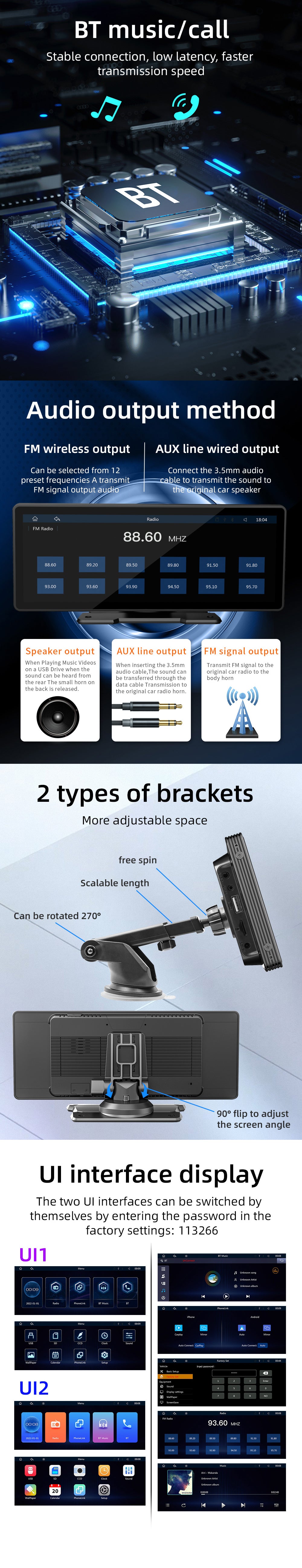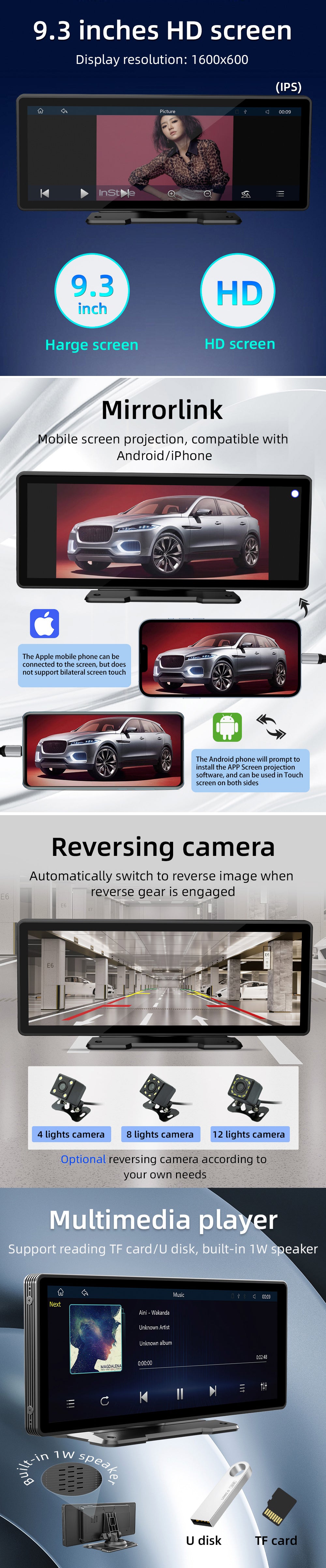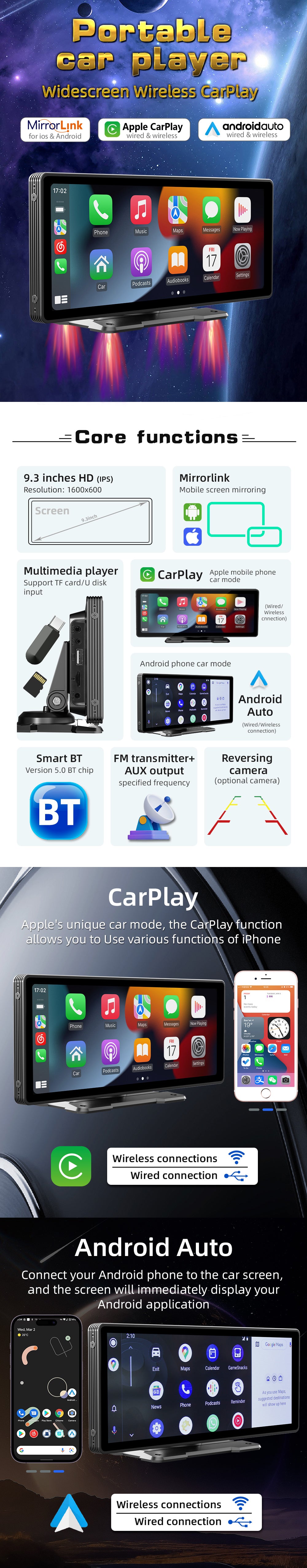 Bluetooth car stereo with wireless carplay 9.3 inch HD IPS screen car multimedia player screen easy to install desktop car mp5 player